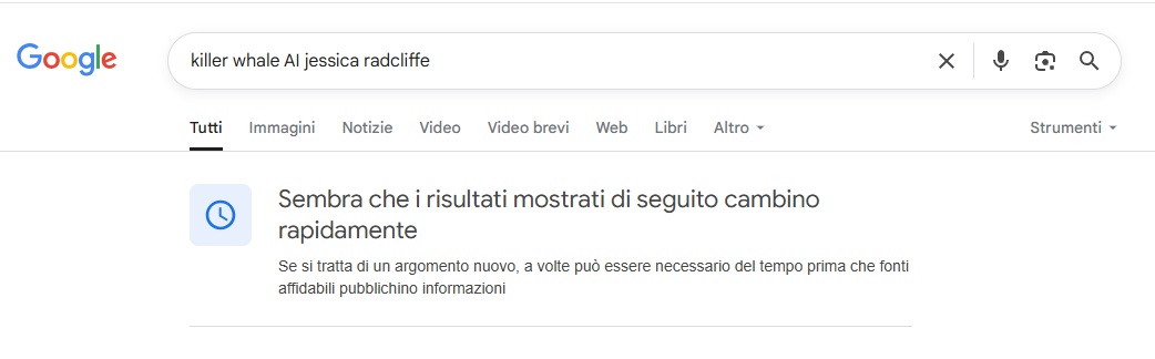 Recherche et à la recherche, le seul « test » qui demeure est la vidéo des derniers moments de la vie de Jessica Radcliffe dans ses nombreuses versions. Mais nous ne nous satisfaisons pas. Google nous avertit également d'un changement soudain de parcelles, de détails et de titres. Taping en anglais Baleine tueur à Jessica Radcliffe L'écran nous montre cet avis.